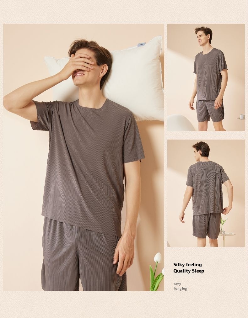 Experience light, smooth comfort with our Men’s Thin Ice Silk Homewear Set, designed for ultimate relaxation and breathability. Made from premium ice silk polyester fiber, this set offers a soft, traceless, and cooling touch that keeps you comfortable during warm days and cozy nights.