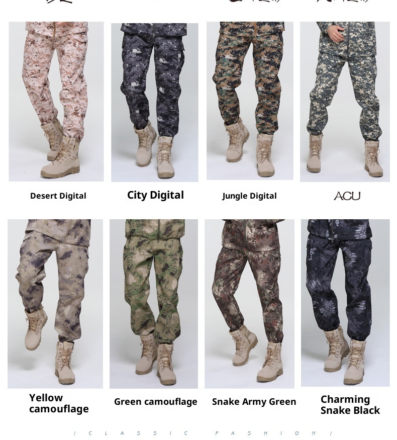Available in multiple colors and camouflage patterns including black, army green, gray, sand, and digital camo styles, you can match your pants with your preferred outdoor gear. Choose from sizes S to XXXL for the perfect fit.